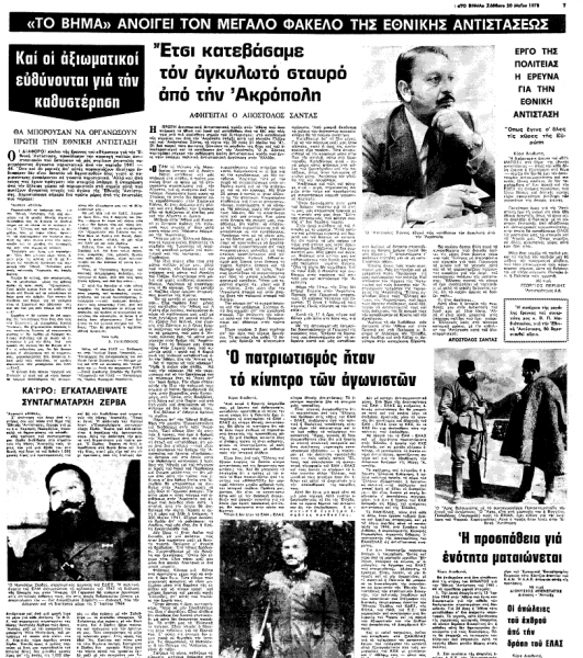 *Αποσπάσματα από άρθρο του Μάριου Πλωρίτη, που έφερε τον τίτλο «Ποτέ!» (Η αντίσταση της Δεξιάς στην Αντίσταση) και είχε δημοσιευτεί στην εφημερίδα «Το Βήμα» την Κυριακή 5 Μαρτίου 1978 (σημειώνεται ότι η αναγνώριση της Εθνικής Αντίστασης εναντίον των στρατευμάτων κατοχής κατά τα έτη 1941-1944 έλαβε εντέλει χώρα τον Αύγουστο του 1982, επί πρωθυπουργίας Ανδρέα Παπανδρέου).