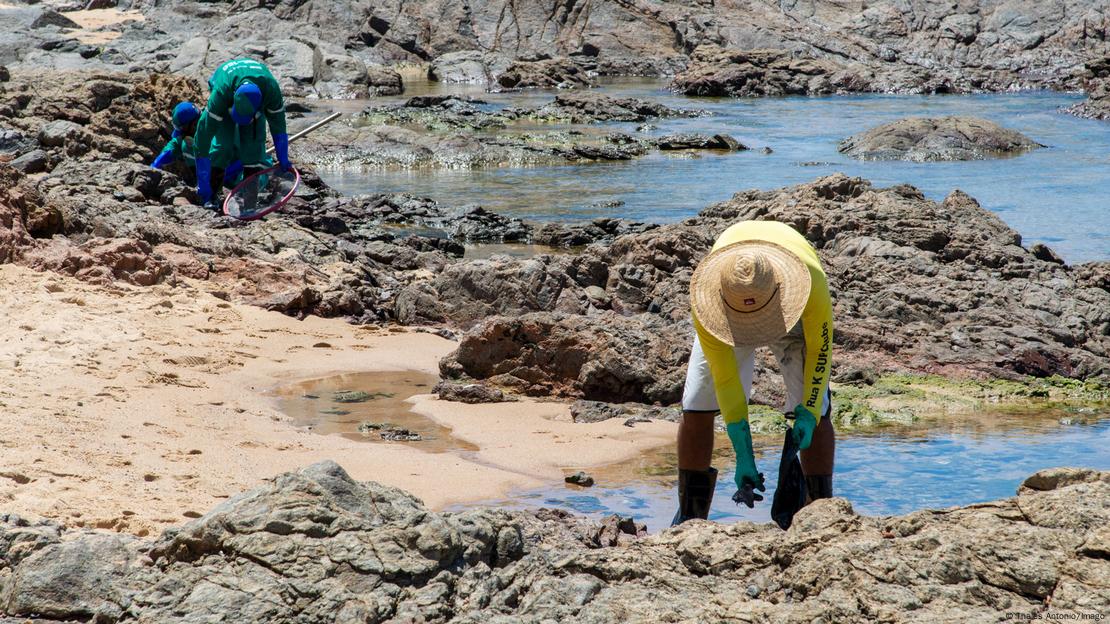 Εθελοντές καθαρίζουν πετρελαιοκηλίδα στο Σαλβαντόρ ντε Μπαΐα το 2019