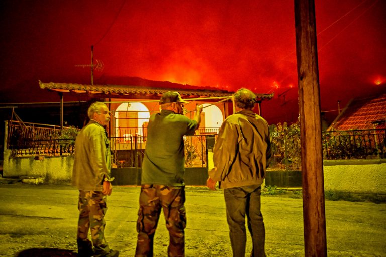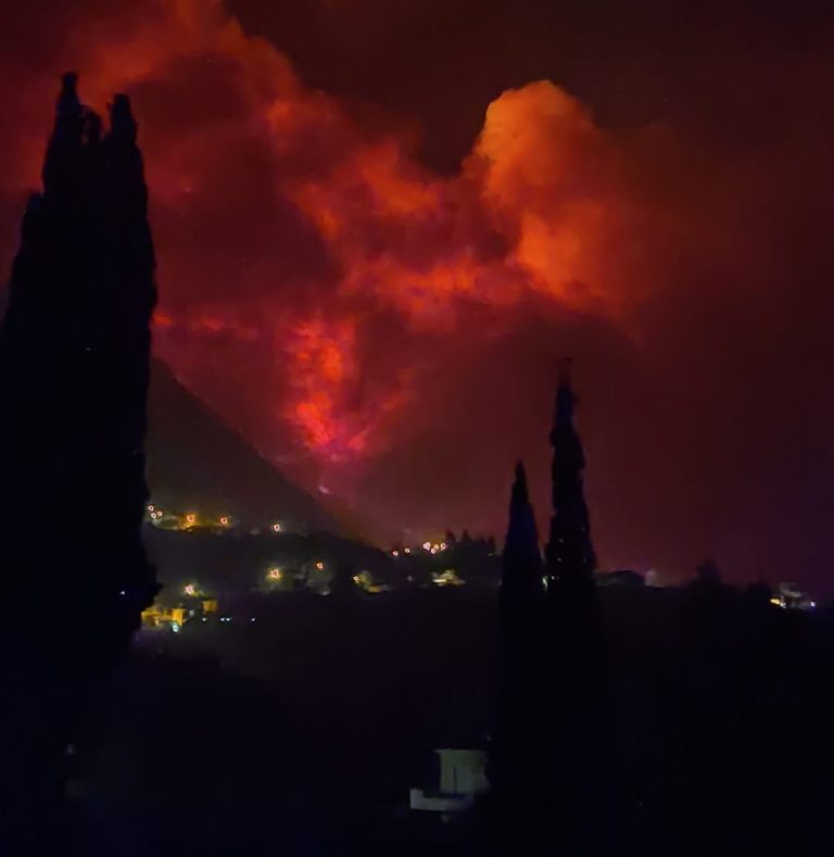 Σύμφωνα με αναφορές, αργά το βράδυ οι φλόγες έφτασαν μέσα στο χωριό Ελληνικό και υπάρχουν πληροφορίες ότι καίγονται σπίτια.