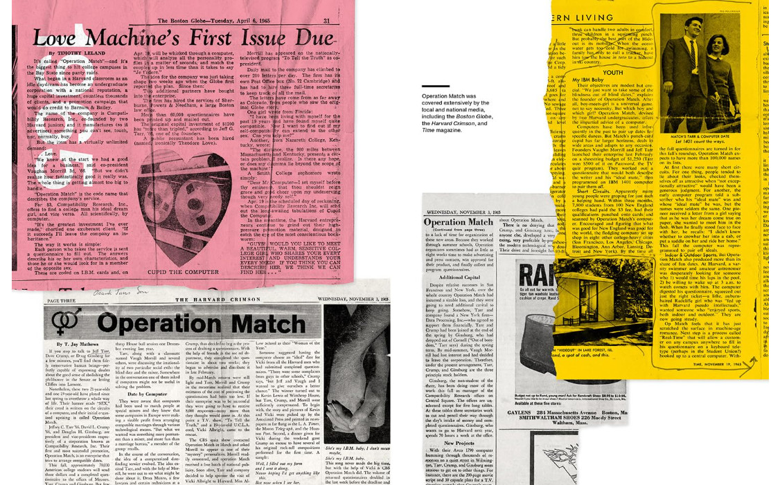 Αυτό ήταν το σλόγκαν μιας πινακίδας που κρεμόταν έξω από μια εστία του Χάρβαρντ το 1965, σηματοδοτώντας την έδρα της πρώτης ηλεκτρονικής υπηρεσίας γνωριμιών στις ΗΠΑ. Δεκαετίες πριν από το Tinder, υπήρχε η εφαρμογή Operation Match.