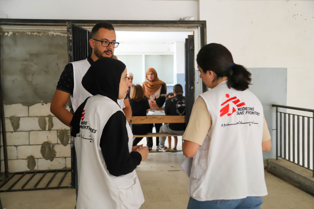 Το προσωπικό των Γιατρών Χωρίς Σύνορα προετοιμάζει αίθουσες διδασκαλίας για να δεχτεί ασθενείς στο πλαίσιο της κινητής κλινικής που αναπτύχθηκε για να ανταποκριθεί στις ανάγκες των εκτοπισμένων.
