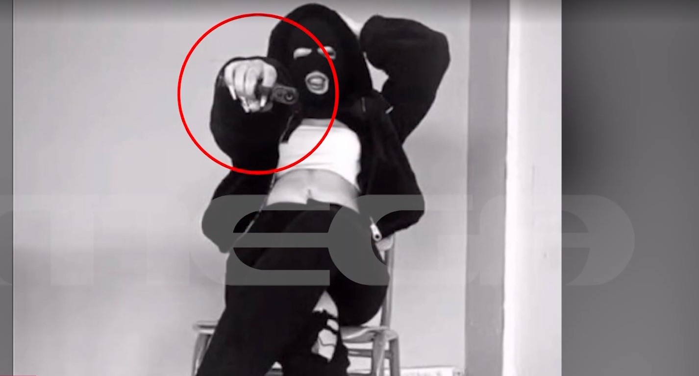 Το κορίτσι, που εμπλέκεται στον άγριο ξυλοδαρμό συνομήλικής της στη Γλυφάδα, φαίνεται να φοράει full face και να βρίσκεται μέσα σε σχολική αίθουσα στοχεύοντας με το όπλο στην κάμερα.