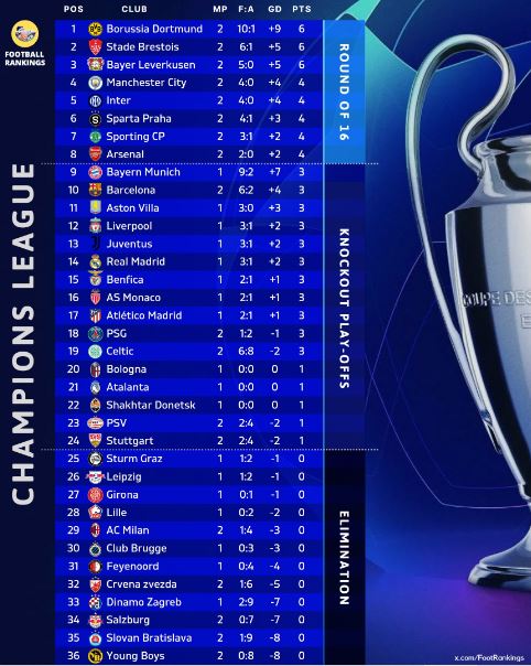 Η Ντόρτμουντ ήταν αυτή που πέτυχε την μεγαλύτερη νίκη της βραδιάς καθώς η γερμανική ομάδα διέλυσε την Σέλτικ με 7-1.