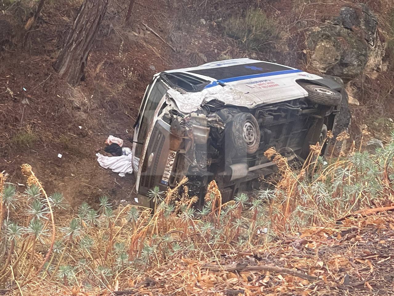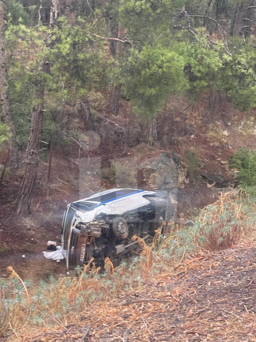 Στο ύψος κοντά στα νεκροταφεία, ο οδηγός έχασε τον έλεγχο και το ασθενοφόρο έπεσε σε γκρεμό και ανατράπηκε.