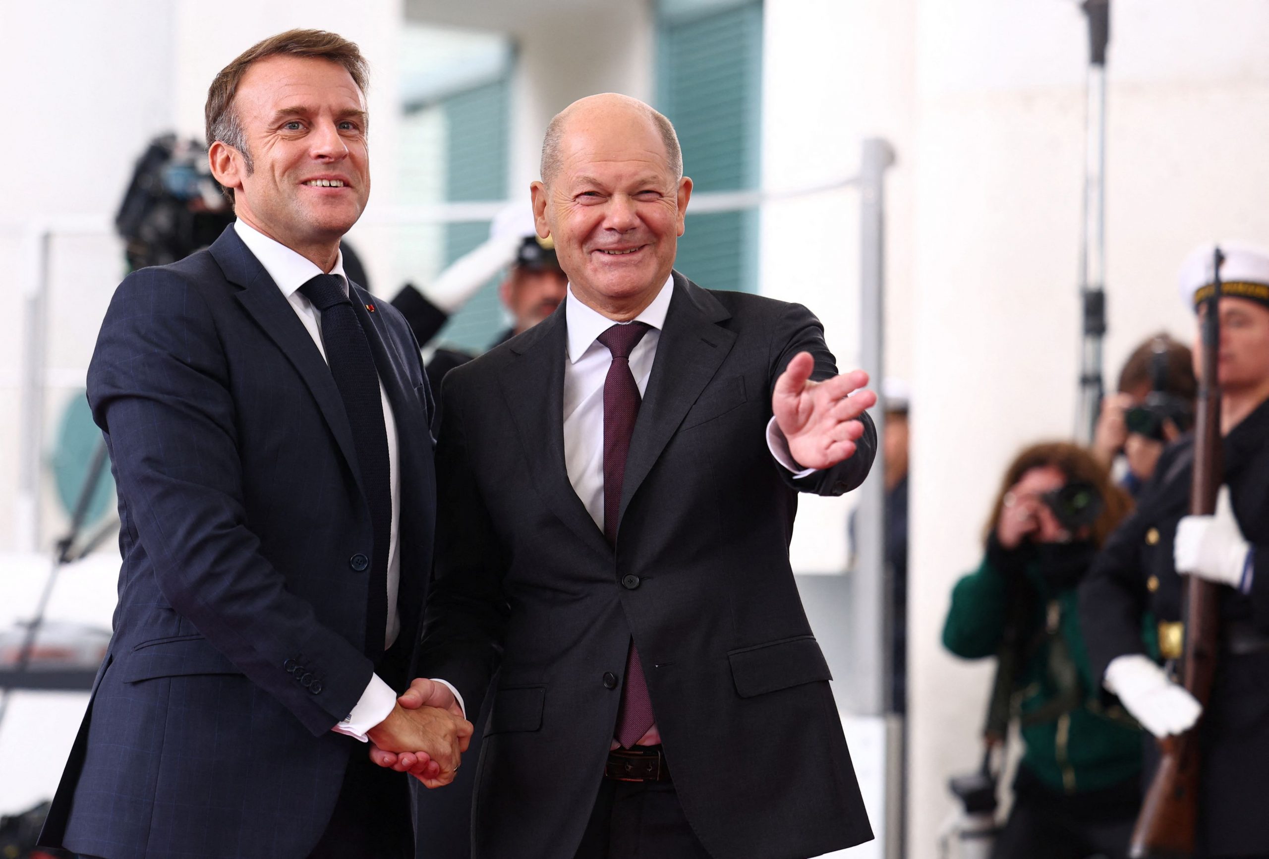 Στον Παγκόσμιο Διάλογο του Βερολίνου την περασμένη Τετάρτη, ο Σολτς και ο Μακρόν έδωσαν τα χέρια, χαμογέλασαν θερμά και στη συνέχεια πέρασαν την ημέρα προσφέροντας εξαιρετικά διαφορετικές απόψεις για το τι πρέπει να κάνει η Ευρώπη στη συνέχεια. Αποκλίνουν σε βασικά θέματα, συμπεριλαμβανομένων των προτάσεων για κοινό δανεισμό της ΕΕ, των δασμών στις εισαγωγές κινεζικών οχημάτων και των εμπορικών συνομιλιών με χώρες της Νότιας Αμερικής.