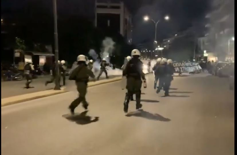 Σύμφωνα με την Αστυνομία ομάδα ατόμων κατά την αποχώρησή τους στη συμβολή Κηφισίας και Πανόρμου πέταξαν πέτρες και φωτοβολίδες σε αστυνομικές δυνάμεις.