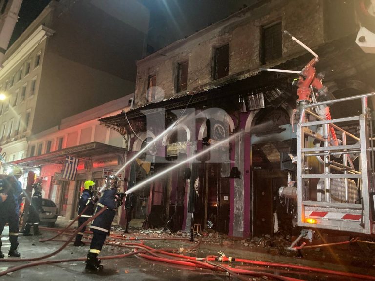 Στις φλόγες τυλίχθηκε σχεδόν ένα οικοδομικό τετράγωνο με διώροφο εγκαταλελειμμένο κτίριο αλλά και καταστήματα που καταστράφηκαν ολοσχερώς