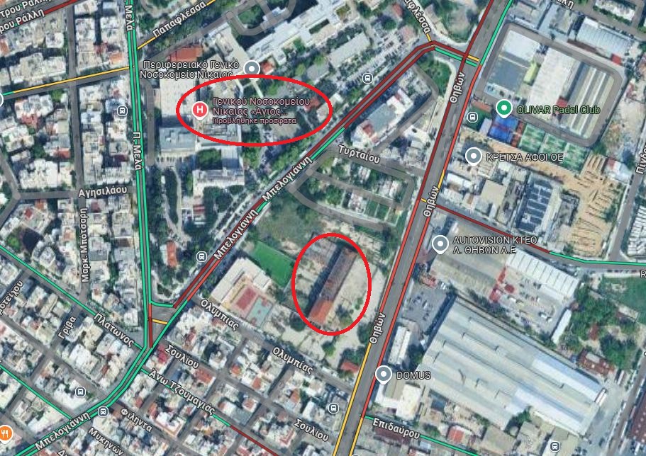 Όπως φαίνεται και στον χάρτη η φωτιά έχει εκδηλωθεί σε κτίριο που βρίσκεται σε σχετικά κοντινή απόσταση από το Γενικό Κρατικό Νοσοκομείο Νίκαιας