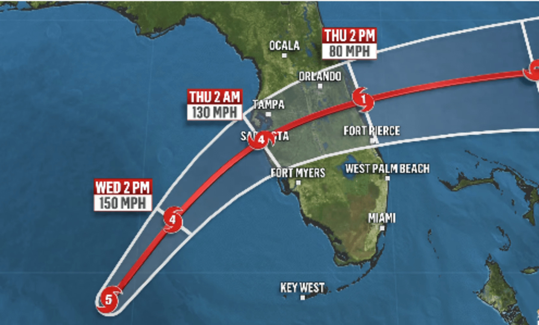 «Αν και είναι πολύ νωρίς για να εκτιμηθούν οι ασφαλισμένες ζημιές, ένα βαρύ χτύπημα τυφώνα σε μια από τις πιο πυκνοκατοικημένες περιοχές της Φλόριντα θα μπορούσε να οδηγήσει σε ζημία περίπου 50 δισ. δολαρίων», προειδοποίησαν ο αναλυτής μετοχών της Jefferies, Yaron Kinar και άλλοι σε σημείωμά τους. «Εάν συμβεί το 1 στα 100 χρόνια γεγονός, κάποιοι υπολογίζουν ότι οι ζημιές θα μπορούσαν να φτάσουν ακόμη και τα 175 δισ. δολάρια στην περιοχή της Τάμπα και τα 70 δισ. δολάρια σε απώλειες στην περιοχή Φορτ Μάγιερς».