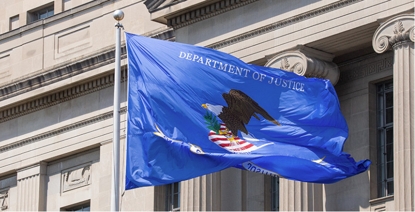 Αφγανός συνελήφθη στην Οκλαχόμα ως ύποπτος για σχεδιασμό «τρομοκρατικής επίθεσης» ανήμερα των προεδρικών εκλογών, ανακοίνωσε χθες Τρίτη το υπουργείο Δικαιοσύνης των ΗΠΑ (στη φωτογραφία από justice.gov, επάνω, η σημαία του υπουργείου Δικαιοσύνης κυματίζει μπροστά από την έδρα του στην Ουάσιγκτον).