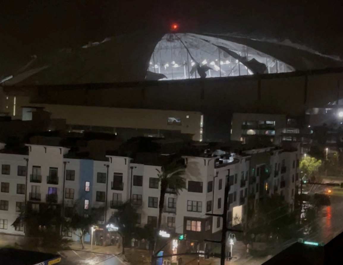 Ο τυφώνας Milton πέρασε με σφοδρότητα από την περιοχή του Κόλπου της Τάμπα το βράδυ της Τετάρτης. Από ότι φαίνεται το στάδιο Tropicana Field – έδρα της ομάδας μπέιζμπολ Tampa Bay Rays – φαίνεται να έχει υποστεί σοβαρές ζημιές.
