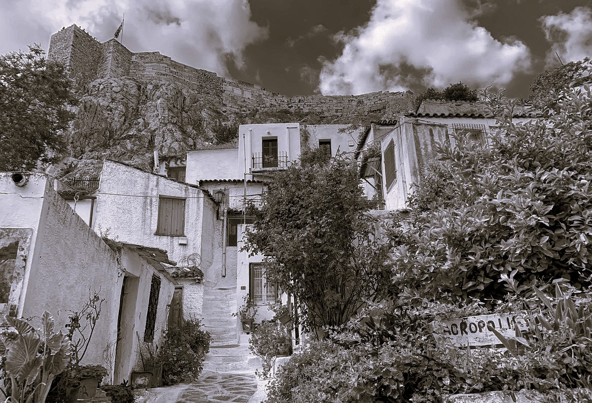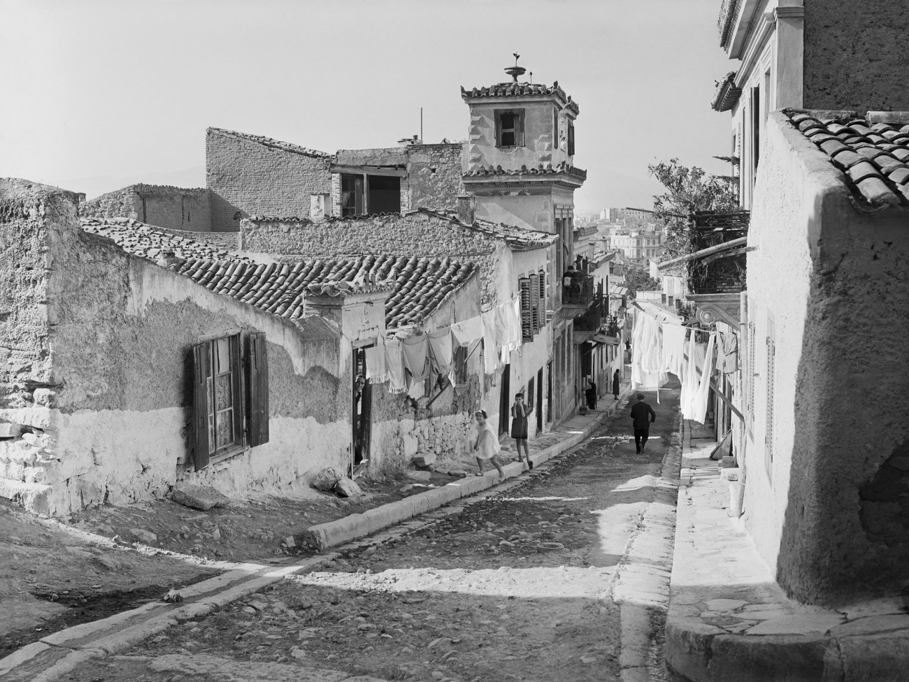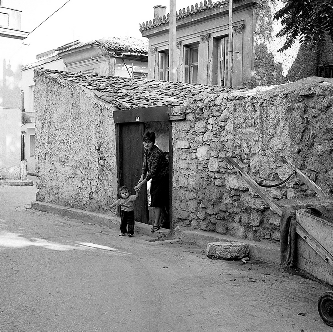 Έτσι, παλεύουν στα γρήγορα να στεγάσουν τα υπόσκαφα σπιτάκια τους. Εκεί. Σφιχταγκαλιασμένα, κολλημένα στον βράχο της Ακρόπολης, ασβεστωμένα, με μπλε πορτο-παράθυρα, ένας αυθεντικός νησιώτικος οικισμός στην καρδιά της πόλης.