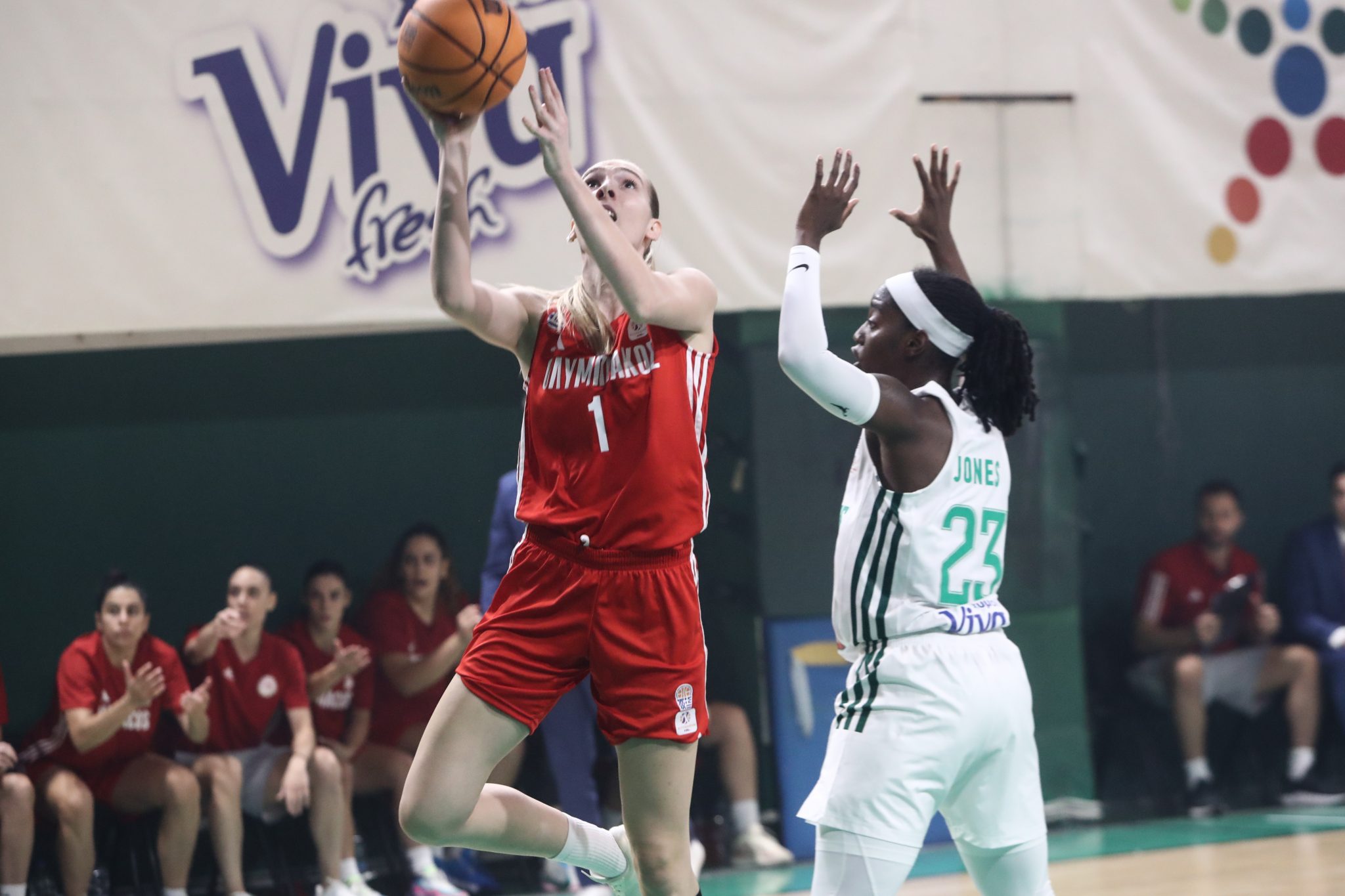 Στο αγωνιστικό κομμάτι οι φιλοξενούμενες ήταν καλύτερες στην πρώτη περίοδο του αγώνα, με την Χριστινάκη να αναλαμβάνει τα ηνία της επίθεσης και να στέλνει τις ερυθρόλευκες στο +5 με δύο σερί τρίποντα (12-17, 9′).