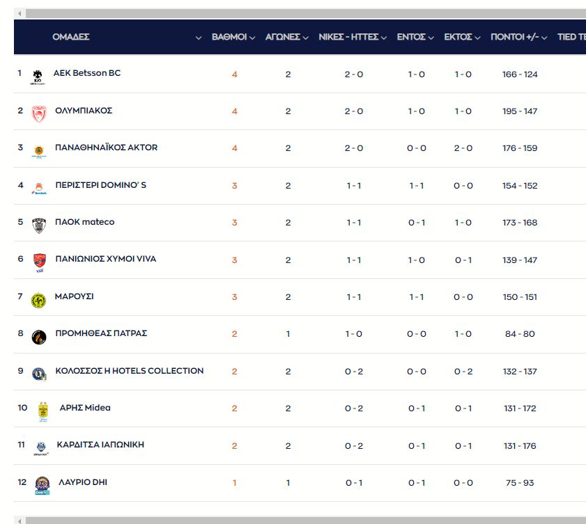 Πως έχει διαμορφωθεί η βαθμολογία της Greek Basketball League μετά τις νίκες του Ολυμπιακού και του Περιστερίου.