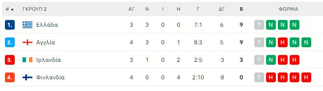 Η βαθμολογία μετά τη νίκη της Αγγλίας
