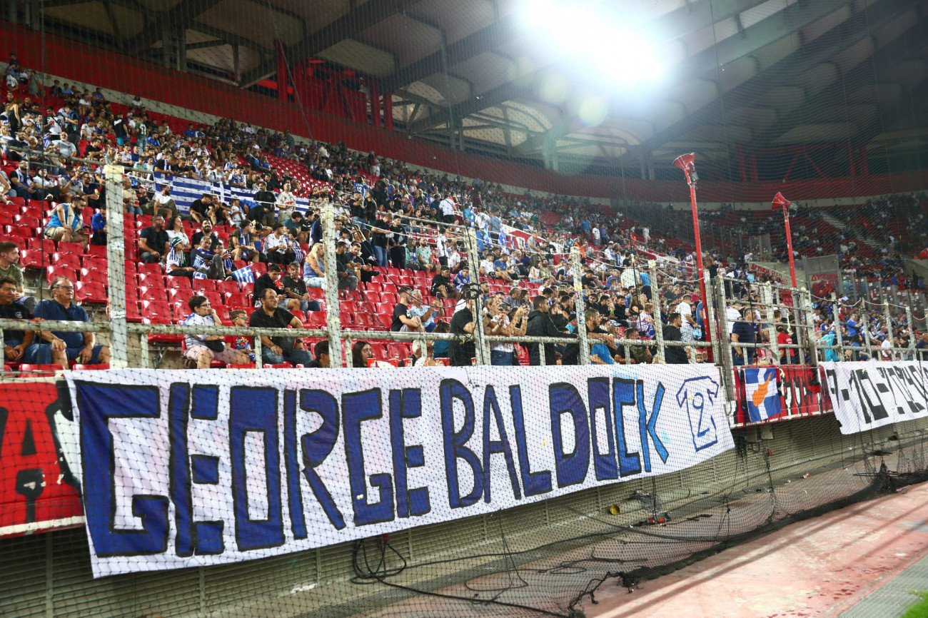 Συγκεκριμένα ο Πέτρος Μάνταλος και ο Γιώργος Μασούρας κρατούσαν στα χέρια τους τη φανέλα του αδικοχαμένου Τζορτζ Μπάλντοκ, με ολόκληρο το γήπεδο να τους αποθεώνει.