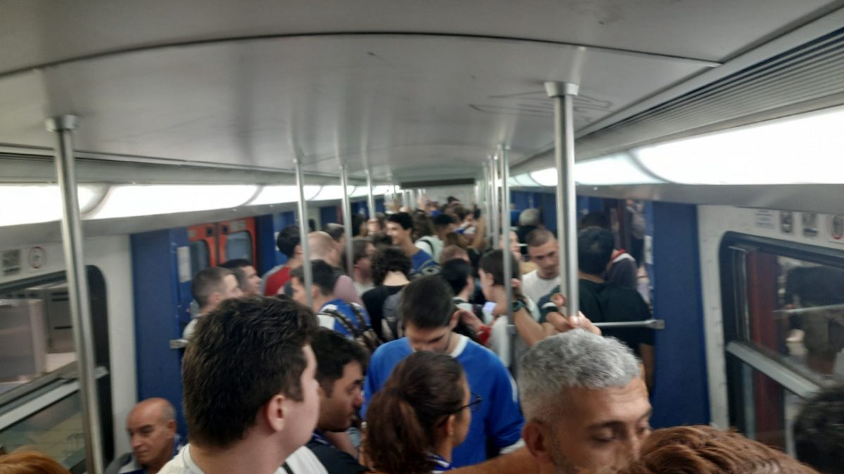 Πάνω από 20 λεπτά αναμονής για δεκάδες κόσμο (μεταξύ των οποίων και αρκετοί Ιρλανδοί) μέχρι να έρθει κάποιος συρμός για να μεταφέρει…σαρδέλές μια στάση μακριά, που όμως έμοιαζε τόσο μακριά που όταν έφτασε ο συρμός στο Νέο Φάληρο, εύστοχα ένας πατέρας που ήταν στριμωγμένος και αυτός με το γιό του φώναξε: «Λιανοκλάδι, φτάσαμε κατεβείτε».
