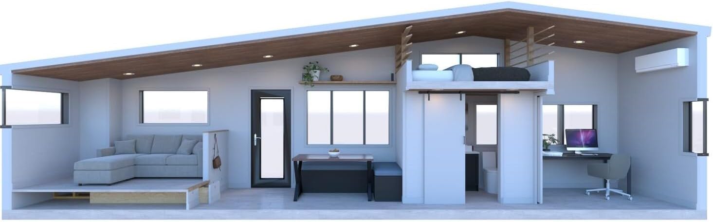 Αυτό το φορητό σπίτι από ξύλο και χάλυβα εκτείνεται στα 11 μέτρα μήκος και 4,1 μέτρα πλάτος. Ο επιπλέον χώρος επιτρέπει τον διαχωρισμό μεταξύ της κουζίνας και του καθιστικού, μια σοφίτα που χωράει ένα κρεβάτι queen-size και ένα δεύτερο δωμάτιο που μπορεί να χρησιμοποιηθεί ως γραφείο ή επιπλέον υπνοδωμάτιο.