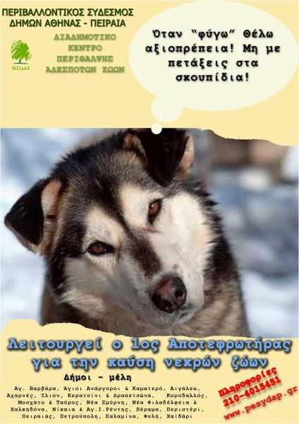 Τέλος, υπενθυμίζουμε στους γνωστούς κύκλους, που συκοφαντούν το μοναδικό στη χώρα δημόσιο νοσοκομείο αδέσποτων ζώων, ότι μέχρι τώρα το ΔΙ.ΚΕ.Π.Α.Ζ έχει νοσηλεύσει και φροντίσει 60.000 άρρωστα, τραυματισμένα, δηλητηριασμένα, κακοποιημένα και πυρόπληκτα αδέσποτα ζώα. Και έχει καταφέρει να υιοθετηθούν περισσότερα από 5.000 από αυτά.