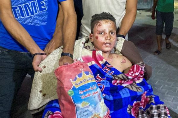 Ένα παλαιστίνιο αγόρι που τραυματίστηκε από ισραηλινό πλήγμα δέχεται βοήθεια καθώς μεταφέρεται σε νοσοκομείο, στην Τζαμπάλια, στη βόρεια Λωρίδα της Γάζας, 5 Οκτωβρίου 2024.