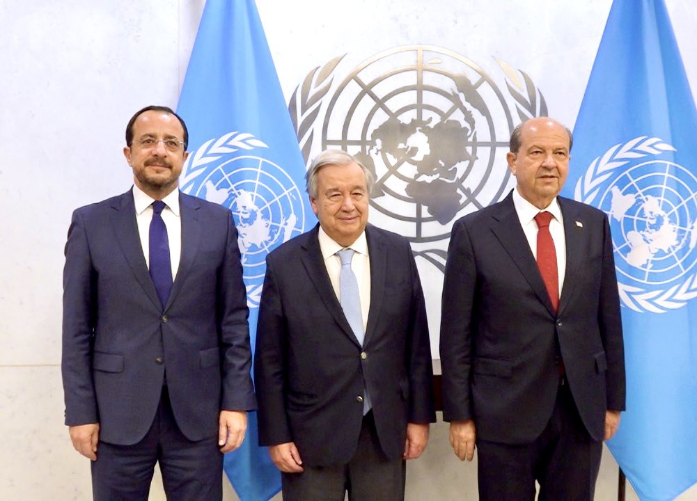 Πολύ καλή χαρακτήρισε τη βραδιά του άτυπου δείπνου ο ΓΓ του ΟΗΕ Αντόνιο Γκουτέρες, αναφερόμενος στην άτυπη τριμερή συνάντηση, η οποία πραγματοποιήθηκε στο κτίριο των Ηνωμένων Εθνών στη Νέα Υόρκη και διήρκεσε περίπου μιάμιση ώρα, με τον πρόεδρο της Κυπριακής Δημοκρατίας Νίκο Χριστοδουλίδη και τον κατοχικό ηγέτη Ερσίν Τατάρ (φωτογραφία, επάνω, από το Χ).