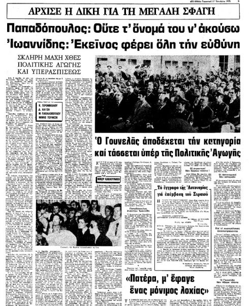 Τα ανωτέρω είναι ένα μικρό απόσπασμα από το ρεπορτάζ του «Βήματος» για τη Δίκη του Πολυτεχνείου, που είχε αρχίσει σε ειδικά διαμορφωμένη αίθουσα των φυλακών Κορυδαλλού πριν από 49 ακριβώς χρόνια, την Πέμπτη 16 Οκτωβρίου 1975 (το απόσπασμα προέρχεται από το φύλλο του «Βήματος» που είχε κυκλοφορήσει την επομένη, Παρασκευή 17 Οκτωβρίου 1975).