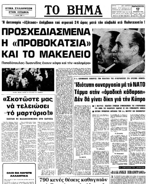 «ΤΟ ΒΗΜΑ», 17.10.1975, Ιστορικό Αρχείο «ΤΟ ΒΗΜΑ» & «ΤΑ ΝΕΑ»