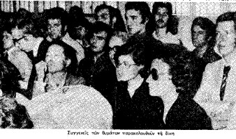 Ξαφνικά μια ριπή τον έριξε χάμω. Τρεις μέρες αργότερα ο Μαρκούλης πέθανε στο Ρυθμιστικό από τη δολοφονική ριπή. Τρεις μήνες αργότερα γεννήθηκε το παιδί που δεν πρόλαβε να γνωρίσει. Χθες το κοριτσάκι του, 18 μηνών, η νεαρή μάνα του και γυναίκα του θύματος, καθώς και οι γονείς του Μαρκούλη, είχαν καταλάβει μια σειρά από καρέκλες στο ακροατήριο του Πενταμελούς Εφετείου. Η παρουσία τους ήταν ένα ύστατο μνημόσυνο στη μνήμη του γιου και συζύγου, που πήγε αδικοχαμένος από τις σφαίρες των δικτατόρων.