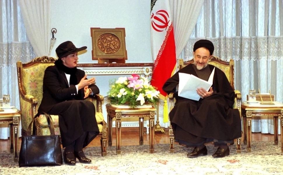 Τον Νοέμβριο του 1998, όταν ως υπουργός Ανάπτυξης επισκέφθηκε την Τεχεράνη, σε μια σκληρή περίοδο εξονυχιστικών ελέγχων και απαγορεύσεων για τον γυναικείο πληθυσμό του Ιράν. Αρνήθηκε να φορέσει μαντήλα στις επίσημες συναντήσεις της. Σε ένδειξη σεβασμού και ξεπερνώντας τα τυπικά του ενδυματολογικού κώδικα, επέλεξε συμβολικά να φορέσει καπέλο.