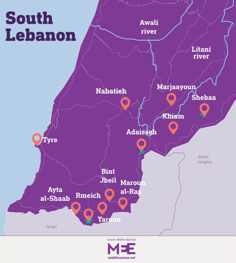 Δημοσιογράφοι που καλύπτουν τα γεγονότα στον νότιο Λίβανο δήλωσαν στο MEE ότι οι περισσότερες κωμοπόλεις που συνορεύουν με το Ισραήλ βρίσκονται κάτω από ισραηλινό έλεγχο.