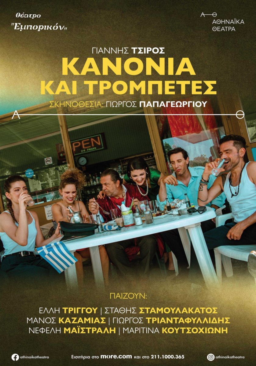 Με το νέο έργο του Γιάννη Τσίρου «Κανόνια και τρομπέτες» σε σκηνοθεσία Γιώργου Παπαγεωργίου, κάνει πρεμιέρα στις 10 Οκτωβρίου το θέατρο Εμπορικόν.