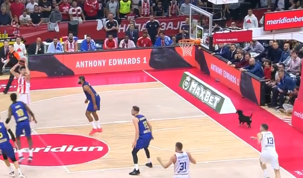 Μια ασυνήθιστη… εισβολη στον αγώνα του Ερυθρού Αστέρα με την Μπαρτσελόνα όταν ένα μικρό σκυλί εμφανίστηκε στο παρκέ!