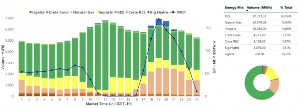 Τις προαναφερόμενες πέντε ώρες η συμμετοχή των ΑΠΕ στο ενεργειακό μίγμα έφτασαν σε πολύ υψηλά επίπεδα.