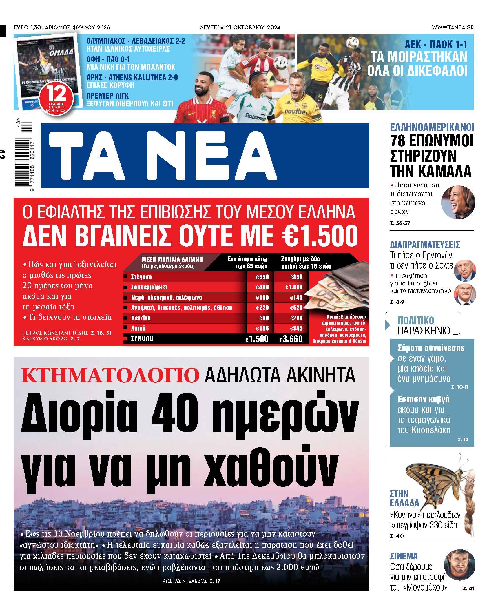Στα «ΝΕΑ» της Δευτέρας: Διορία 40 ημερών για να μη χαθούν