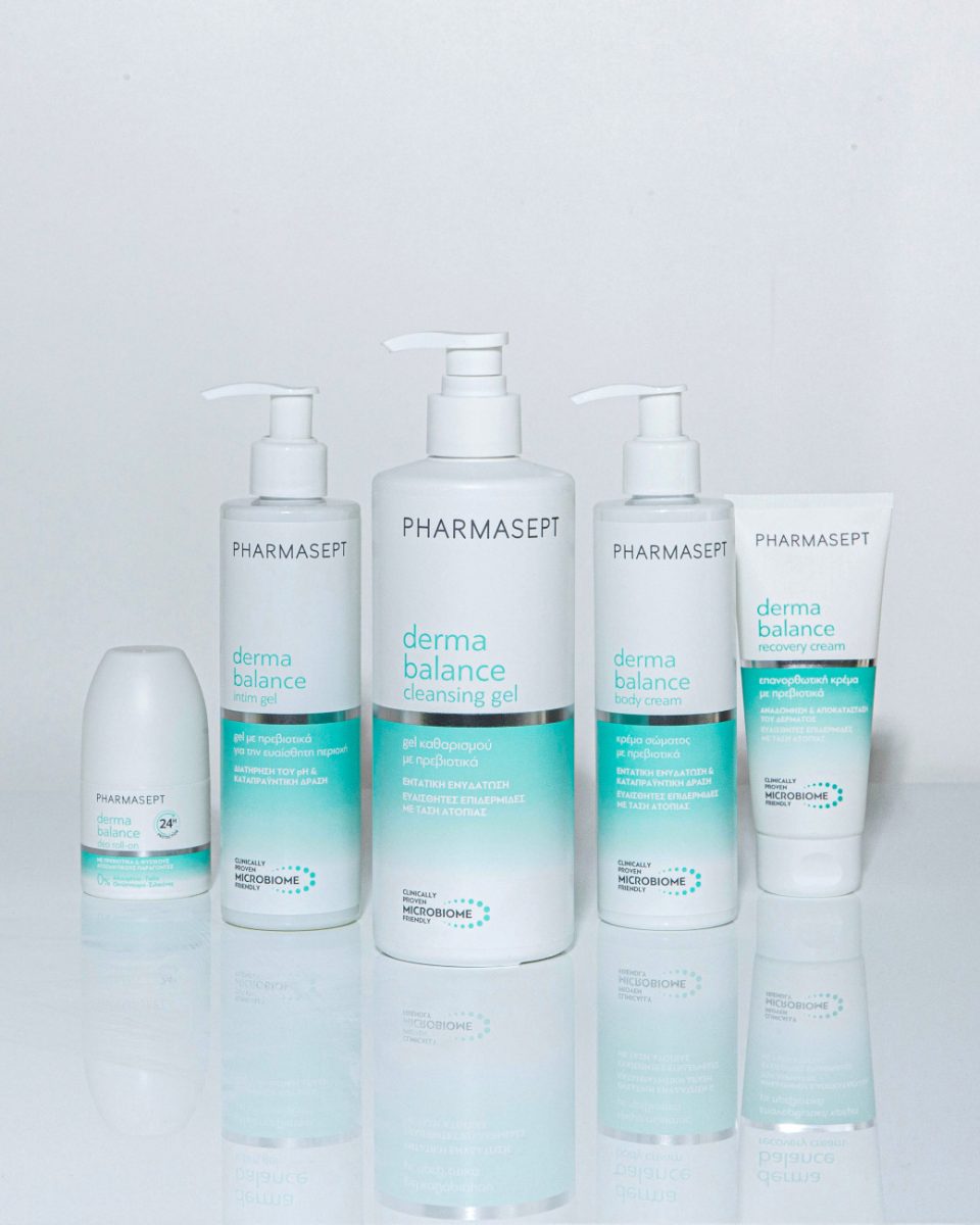 Όποιες και αν είναι οι ανάγκες της επιδερμίδας μας, το σίγουρο είναι πως η PHARMASEPT, η οποία δραστηριοποιείται στο χώρο του φαρμακείου εδώ και 29 χρόνια, θα έχει σίγουρα ένα προϊόν που αξίζει την εμπιστοσύνη μας και φυσικά, μία θέση στο ντουλάπι του μπάνιου μας. Επίσης, είναι σημαντικό να γνωρίζουμε πως η σειρά Derma Balance, η οποία περιλαμβάνει άλλα δύο προϊόντα, το αποσμητικό Mild Deo Roll-on και το gel καθαρισμού ευαίσθητης περιοχής Intim Gel, όπως και όλες οι σειρές που μας προσφέρει η PHARMASEPT, είναι δερματολογικά ελεγμένες και κλινικά δοκιμασμένες σε αναγνωρισμένα εργαστήρια, με απόλυτο σεβασμό στη φυσιολογία και το pH του δέρματος.