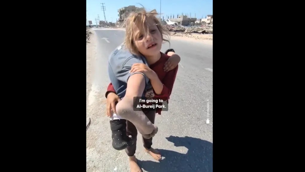 Ραγίζει καρδιές το βίντεο, που αποτυπώνει πτυχές της φρίκης στη Γάζα, το οποίο δείχνει κοριτσάκι να να περπατά ξυπόλητο στην άσφαλτο, κουβαλώντας στο ώμο της τη μικρότερη αδελφή της.