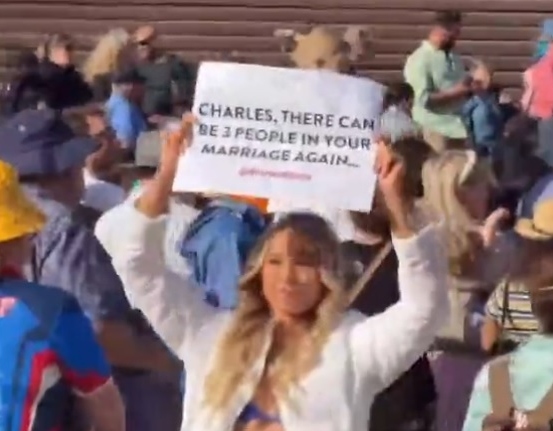 Ωστόσο, ούτε χθες τα πράγματα πήγαν όπως θα ήθελε. Κατά την επίσκεψή του στο Σίδνεϊ, οι περισσότεροι ασχολήθηκαν με μια νεαρή κοπέλα στο πλήθος και λιγότερο με τον Κάρολο. Ο λόγος; Ένα χαρτόνι που κρατούσε, με ένα προκλητικό μήνυμα – που άφηνε και ξεκάθαρα υπονοούμενα για το άτακτο παρελθόν του βασιλιά.