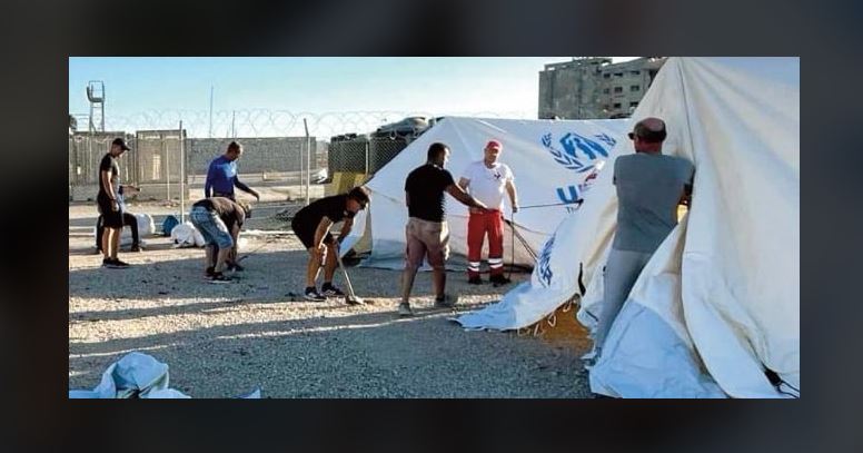 Φωτογραφίες της Ροδιακής δείχνουν τις στιγμές από το στήσιμο των σκηνών από τον Ερυθρό Σταυρό.