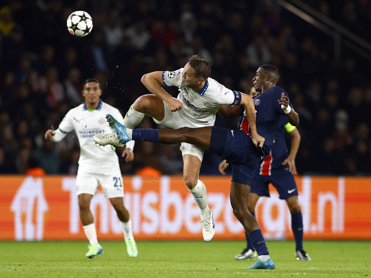 Η Παρί έκανε ξεκάθαρο από την αρχή ότι θα φορτώσει τα εξτρέμ της με όσο περισσότερες προσπάθειες γίνεται. Οι Γάλλοι πίεζαν ανελέητα από το πρώτο λεπτό την Αϊντχόφεν, την ώρα που Μπαρκολά και Ντεμπελέ «κατάπιναν» το ένα χιλιόμετρο μετά το άλλο στα άκρα.