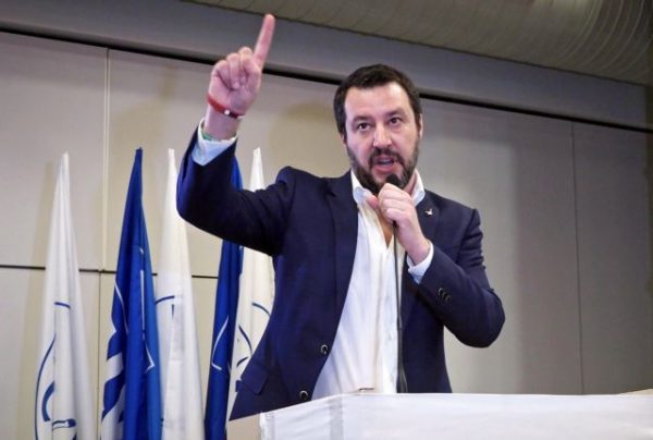 Ο Ματέο Σαλβίνι, ηγέτης του δεξιού κόμματος Lega Nord (Λέγκα του Βορρά, LN), εκφωνεί ομιλία κατά τη διάρκεια της προεκλογικής του περιοδείας στο San Lazzaro di Savena, Ιταλία, 03 Φεβρουαρίου 2018.