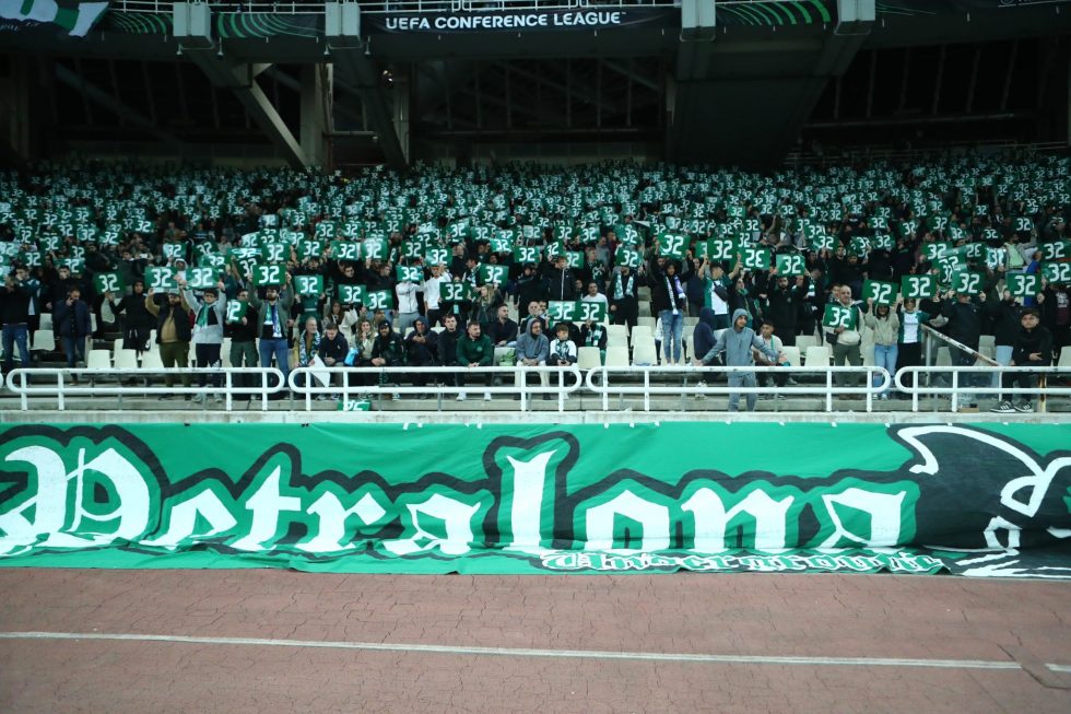 Παράλληλα, ο Παναθηναϊκός μοίρασε χαρτόνια με το «32» σε όλους όσοι έχουν βρεθεί στο γήπεδο, τα οποία κράτησαν στο ενός λεπτού σιγή, ενώ οι πάγκοι είναι βαμμένοι μαύροι σε ένδειξη πένθους.