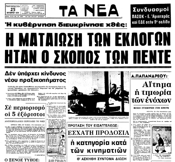 Παράλληλα, όπως διαβάζουμε επίσης στο φύλλο της 25ης Οκτωβρίου, επέκειτο πλέον η άσκηση ποινικής δίωξης εναντίον των πρωτεργατών της 21ης Απριλίου επί εσχάτη προδοσία.