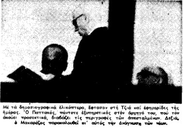 — Καλά, κι’ αν το μυαλό που είχε δεν τούφτανε για να δη και να καταλάβη το πού μας το κατάντησε το κράτος; Μα και πέντε δράμια μυαλό να του είχαν μείνει, χρειαζόταν περισσότερο δηλαδή, για να δη ότι εξ αιτίας του έγινε η συμφορά και η λαχτάρα μας στην Κύπρο, μια τέτοια συμφορά που γνωρίσαμε οι Έλληνες μόνο με τη Μικρασιατική Καταστροφή; Χρειαζόταν, δηλαδή, περισσότερο από πέντε δράμια μυαλό για να εννοήση ότι η διχτατορία, ασκέτως Παπαδόπουλου ή Ιωαννίδη, έφερε τους άτιμους Τουρκαλάδες στο τυραννισμένο και ματωμένο μας νησί, όπου σφάζουν, κλέβουν, βιάζουν και αρπάζουν, κι’ ούτε δείχνουν καμμιά διάθεση να φύγουν παρά σιγουρεύονται για να μείνουνε για πάντα; Ε; Τι λες, κ. δημοσιογράφε μου; Είν’ έτσι ή δεν είναι;