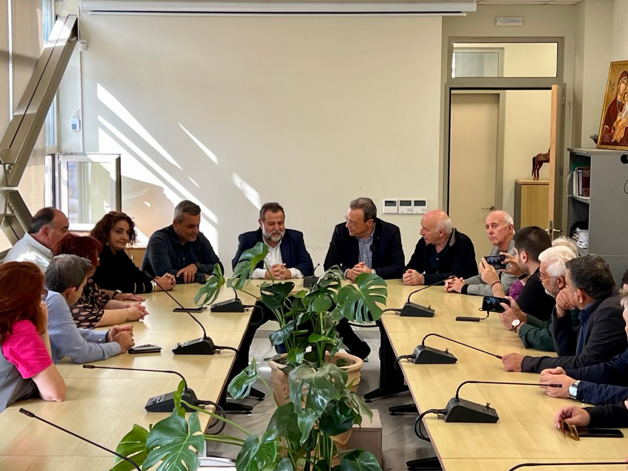 Ο κ. Κοκοσάλης αφού του ευχήθηκε καλή επιτυχία για τον προεκλογικό αγώνα, του έθεσε το πρόβλημα της υποχρηματοδότησης του δήμου, της έλλειψης προσωπικού, του μεγάλου ενεργειακού κόστους, των απορριμμάτων, αλλά και της διαφαινόμενης ιδιωτικοποίησης του νερού.