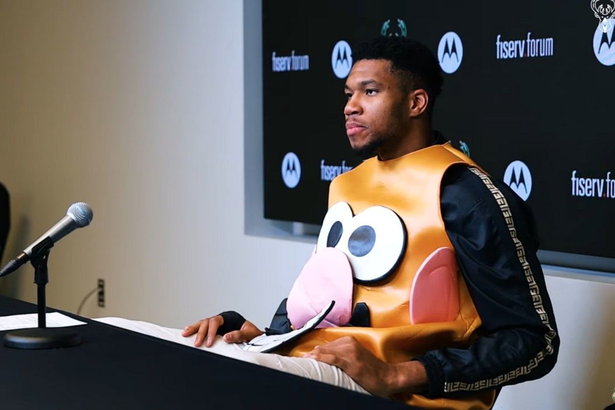 Αφού λοιπόν ο Greek Freak μίλησε γοα το ματς και κάποια στιγμή δέχθηκε ερώτηση σχετικά με την εμφάνισή του και τον λόγο που επέλεξε να φορέσει αυτή την στολή. Και η απάντησή του προκάλεσε γέλιο, όπως και η στολή φυσικά.