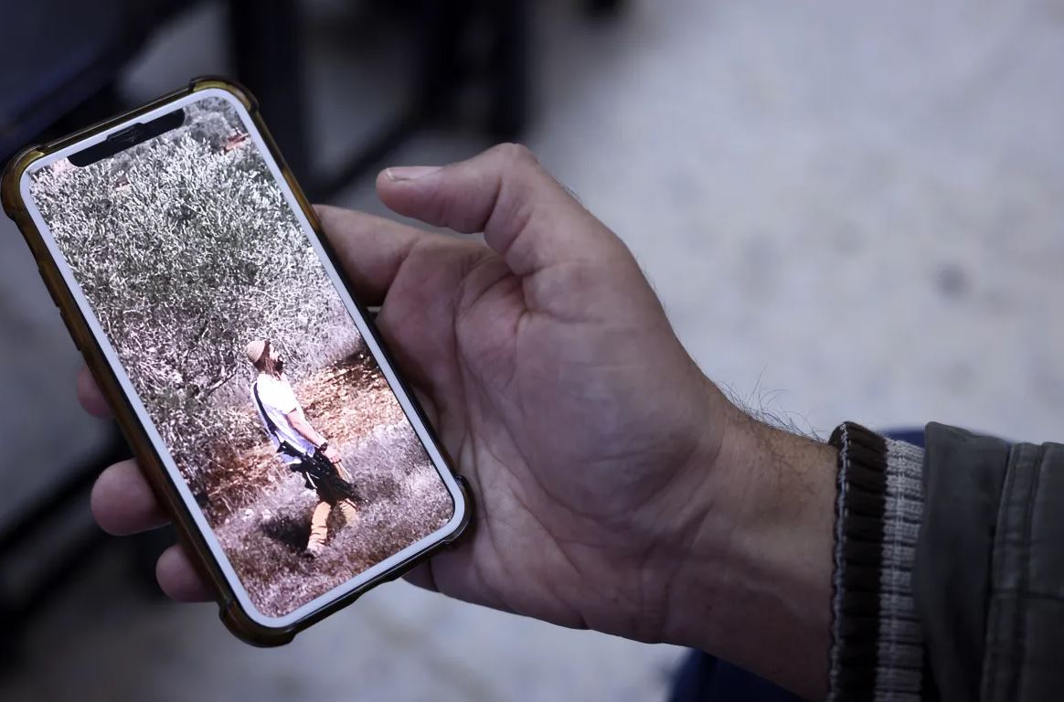 Ο εξτρεμιστής έποικος Μπεν-Νατάν με το όπλο που σκότωσε τον Παλαιστίνιο αγρότη Μπιλάλ Σαλάχ.
