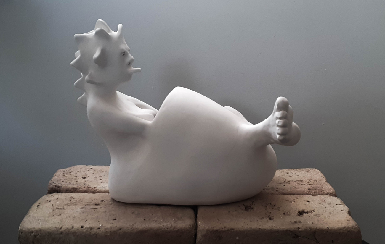 Αντώνης Στοαντζίκης, Ikina, 2024, polymer clay, liquid glass, steel, plaster 53x33x25cm, 2024