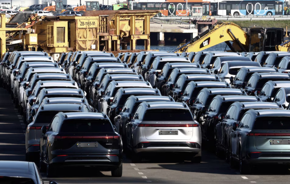 Η κυβέρνηση της Κίνας τόνισε σήμερα Τετάρτη πως «δεν εγκρίνει» και «δεν αποδέχεται» την απόφαση που έλαβε χθες Τρίτη η Ευρωπαϊκή Επιτροπή, έπειτα από έρευνα, να προχωρήσει στην επιβολή επιπρόσθετων δασμών στα ηλεκτρικά αυτοκίνητα που εισάγουν τα κράτη μέλη της από την Κίνα (στη φωτογραφία του Reuters, επάνω, κινεζικά ηλεκτρικά αυτοκίνητα στο λιμάνι Ζεϊμπρούγκε του Βελγίου).