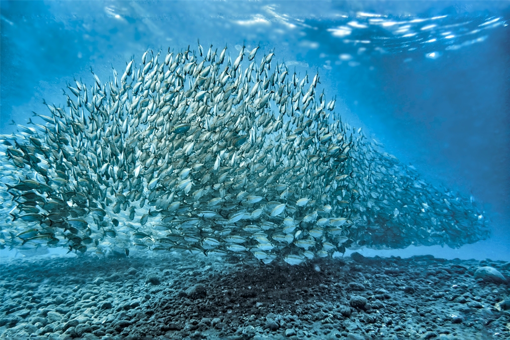 Καθώς καταδύονταν άρχισαν να πλησιάζουν το ένα το άλλο και τελικά σχημάτισαν ένα πελώριο κοπάδι των 23 εκατομμυρίων ατόμων που είχε μήκος άνω των δέκα χιλιομέτρων και κινούταν σαν κύμα.