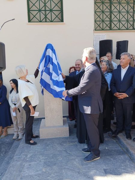 Η τελετή ξεκίνησε με επιμνημόσυνη δέηση, ακολουθούμενη από τα αποκαλυπτήρια της προτομής, έργο του γλύπτη και επίτιμου καθηγητή της Ανώτατης Σχολής Καλών Τεχνών, Θεόδωρου Παπαγιάννη. Η προτομή αποτελεί δωρεά του αείμνηστου Τάκη Αναστόπουλου, με την οικογένειά του να αναλαμβάνει την πρωτοβουλία αυτή σε ένδειξη σεβασμού και φιλίας, ενώ τα αποκαλυπτήρια έκαναν ο Μητροπολίτης Μεσσηνίας Χρυσόστομος, ο Περιφερειάρχης Πελοποννήσου Δημήτρης Πτωχός και η κα. Λουίζα Αναστοπούλου.